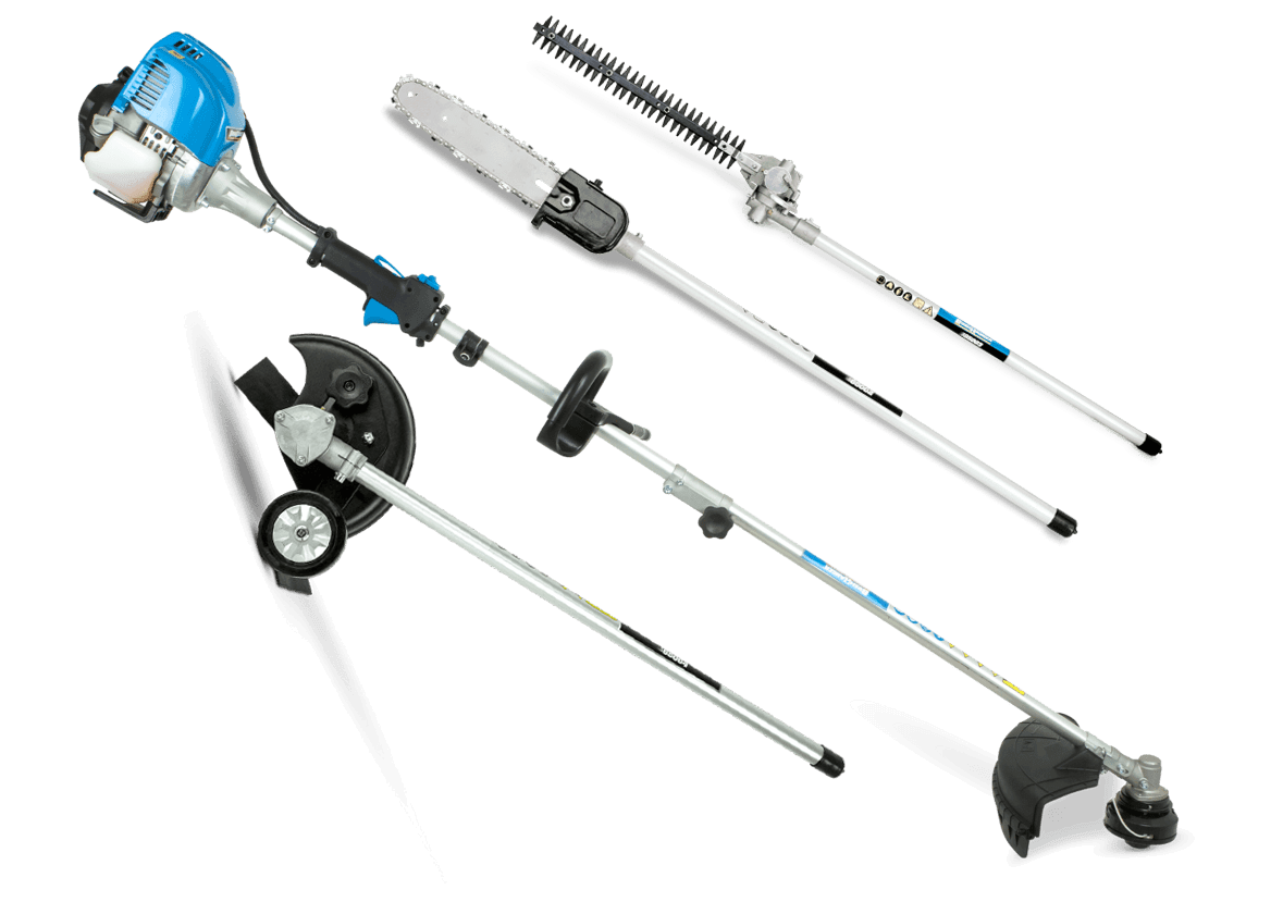 Attachments included trimmer, hedge trimmer, pruner, edger.